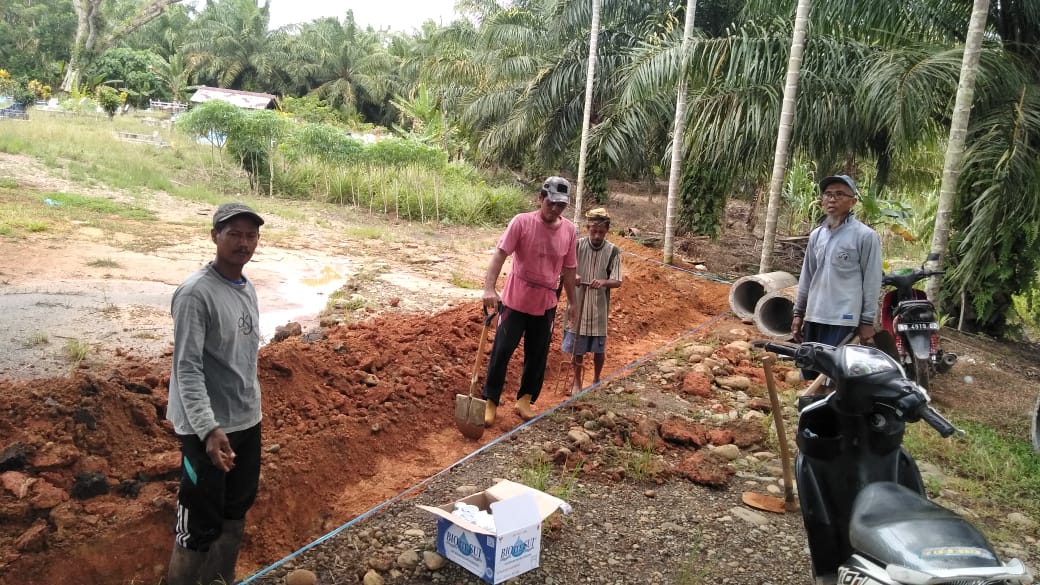 Riak Siabun, dalam kegiatan pembangunan,demi memajukan Desa bukan hanya tanggung jawab pemerintah Desa saja namun juga peran serta masyarakat sangatlah penting dan ini di tunjukkan oleh masyarakat Desa Riak Siabun yang bergotong royong dalam perbaikan jalan makam . masyarakat melakukan pemasangan gorong -gorong dijalan masuk menuju makam.