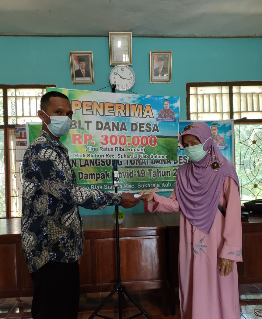 Bantuan Langsung Tunai Dana Desa (BLT-DD) kembali disalurkan secara serentak kepada Keluarga Penerima Manfaat (KPM) di Desa Riak siabun Kec. Sukaraja kab, Seluma. Penyaluran yang dilaksanakan di Balai Desa Riak Siabun, Senin (03/05) ini merupakan penyaluran tahap 2 pada tahun 2021 atau periode bulan April 2021