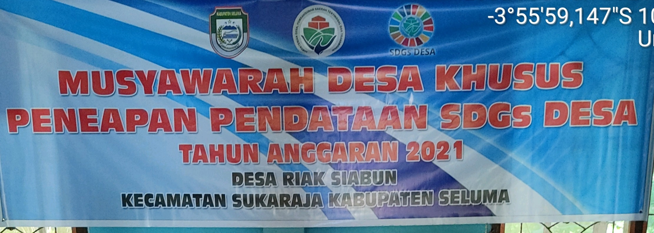 Musyawarah Desa Khusus (musdessus) Penetapan Pendataan SDGs Desa Riak Siabun Kec. Sukaraja Kab. Seluma Prov. Bengkulu dilaksanakan pada tanggal 30 juni 2021 di Balai Desa Riak Siabun. Pada acara MUSDESSus tersebut dibuka dan di tutup oleh Bapak Camat Kec. Sukaraja Bpk. Drs. Ramlan Efendi, SE, dan dihadiri oleh Tenaga Ahli Bpk. M. Nasir, Pendamping Desa Bpk. Imrodili, S.Hut, Pendamping Lokal Desa Bpk. Marnandes, SE, Perangkat Desa, Semua Kepala Dusun (kadus 1 s/d 6) serta tokoh masyarakat dan pemuda.