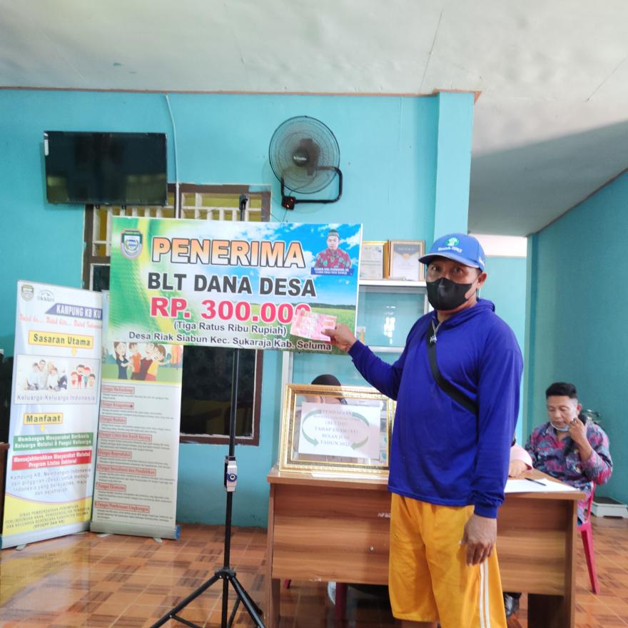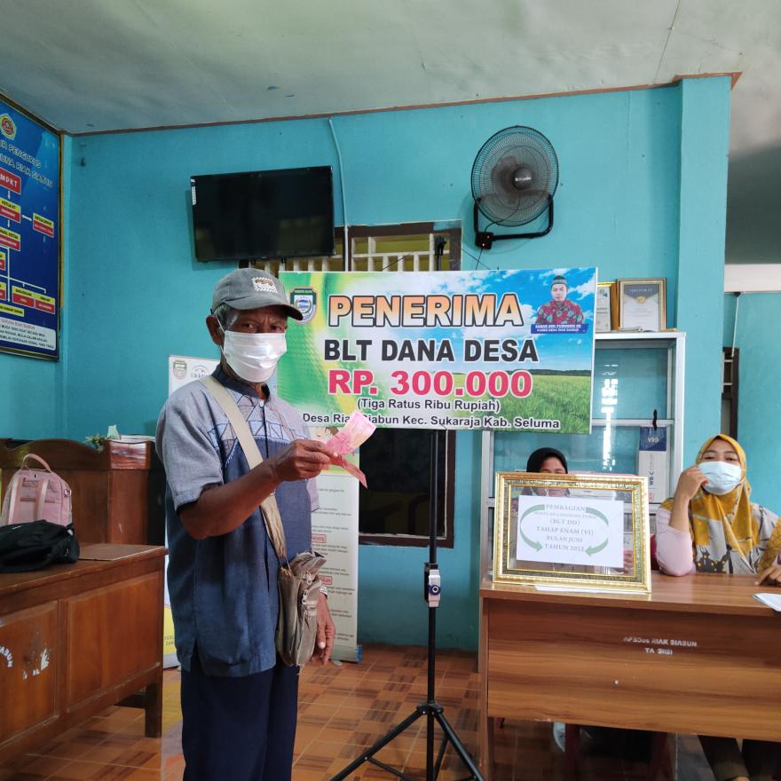 Pembagian BLT (Bantuan Langsung Tunai) Desa Riak Siabun tahap 3 untuk bulan juni pada tanggal 16 juni 2022 dengan jumlah nominal Rp. 300.000,-/ bulan diterima setiap perorangnya sebanyak 86 KPM bertempat di balai desa Riak Siabun.